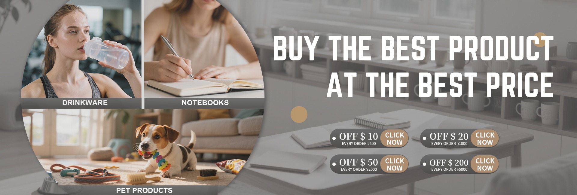 Productos principales:Botellas de agua, tazas, termos de vacío, cuadernos, bolsas para mascotas