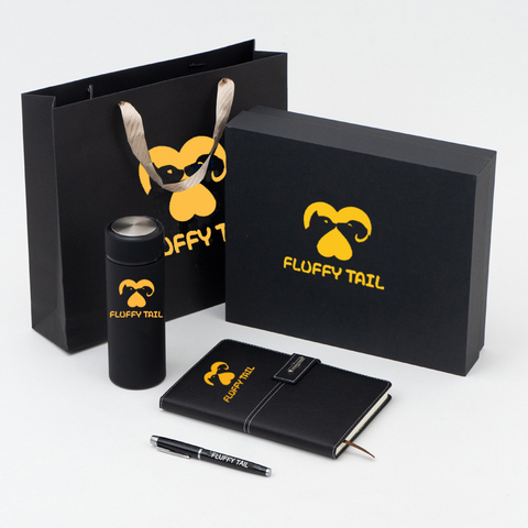 Оптовая продажа, деловая Роскошная настраиваемая искусственная кожа A5 журнал, подарочный набор для ноутбука с ручкой, Термокружка и USB